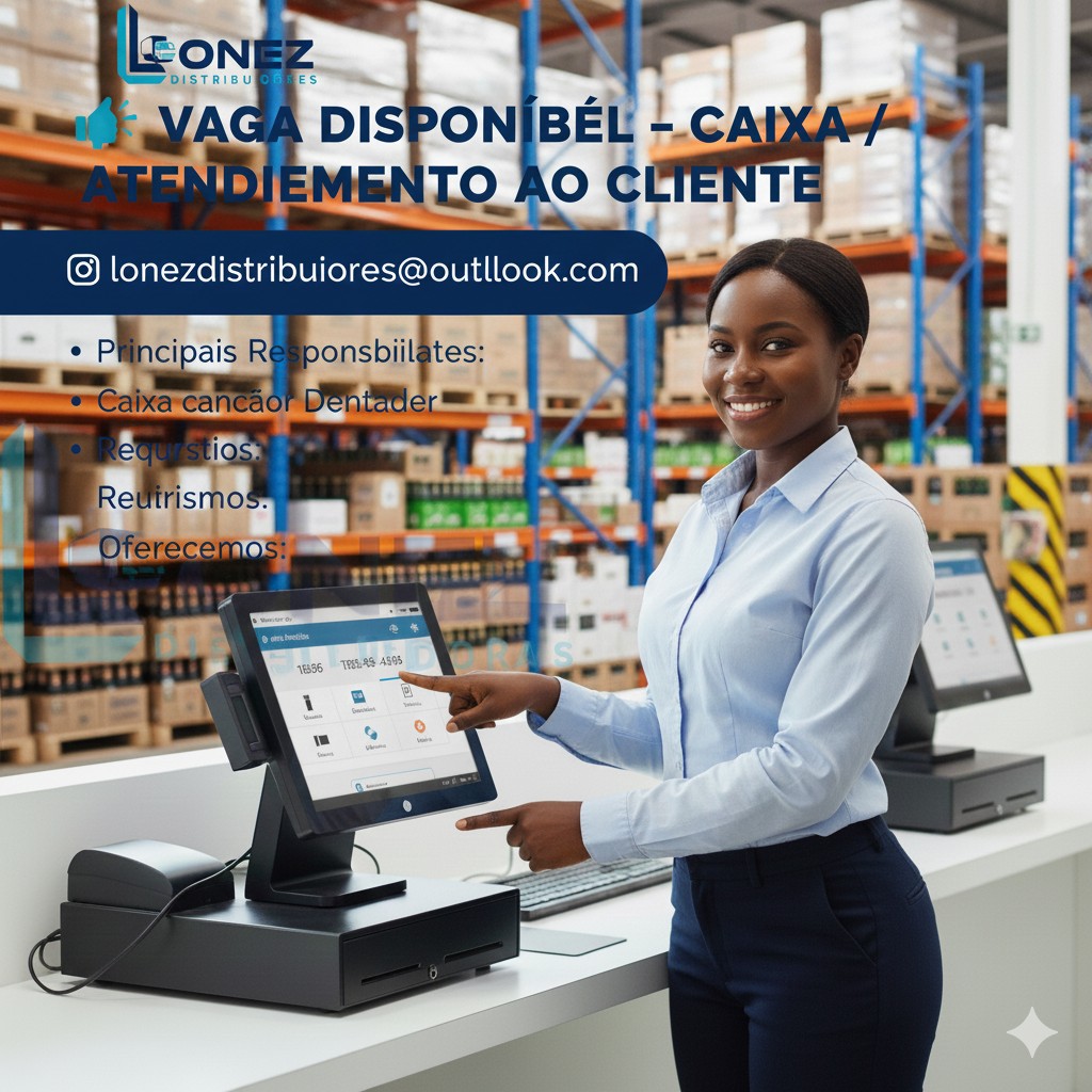 A Lonez Distribuidores, empresa sólida e em franco crescimento no setor de distribuição, recruta um(a) Caixa para integrar a sua equipe, com ênfase em atendimento ao cliente e gestão de vendas.