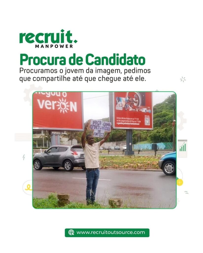 A empresa Recruit Manpower está à procura do jovem apresentado na imagem.