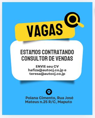 A Autocom Japan, exportadora de viaturas usadas do Japão com representante em Moçambique, pretende recrutar para o seu quadro 5 consultores de venda com experiência na área.