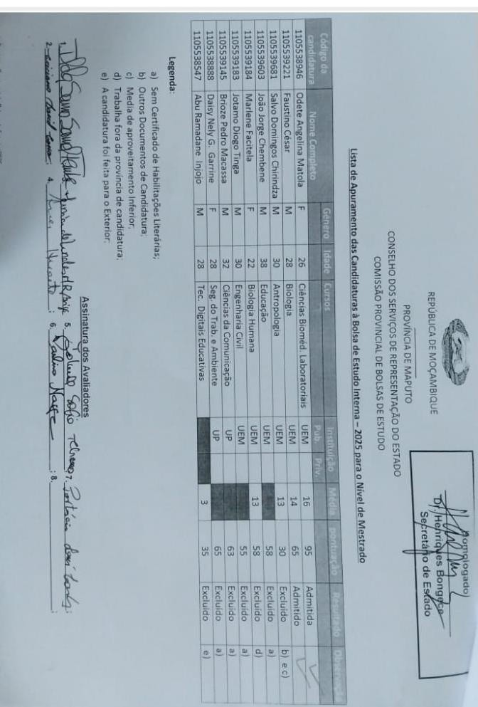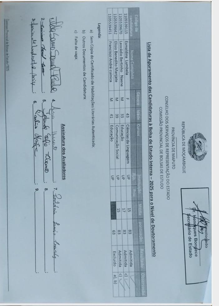 OBS: Os apurados devem contactar o Gabinete de Bolsas de Estudo para os passos subsequentes.