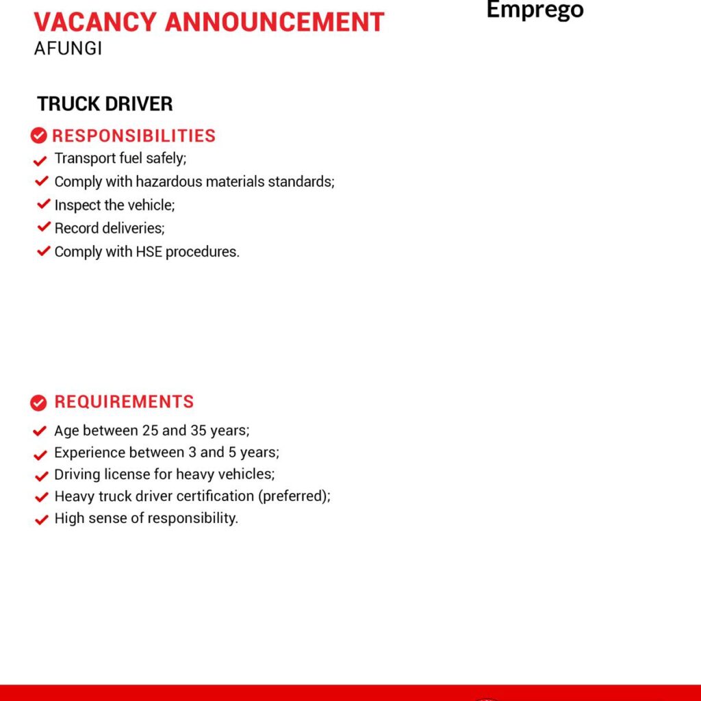 Application must be made through our website: https://www.cbe.co.mz/jobs/truck-driver-191